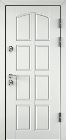 Железная входная дверь в частный дом софт белого цвета №1 — это стильное и практичное решение для вашего дома. Она идеально впишется в любой интерьер благодаря элегантному белому цвету и высококачественной отделке. Внешняя поверхность двери покрыта порошковым термонапылением, которое придает ей устойчивость к внешним воздействиям и повреждениям. Внутреннее покрытие выполнено из плиты МДФ, что добавляет прочности и долговечности. Металлическая конструкция с листом толщиной 2 мм и усиленными ребрами жесткости на основе профильных труб 40х25 мм гарантирует надежность и безопасность. Два контура резинового уплотнителя обеспечивают отличную герметичность. Дверь оснащена двумя замками с тремя ригелями, что повышает уровень защиты. Также предусмотрена возможность добавления зеркала, стеклопакета и кованых элементов для более индивидуального внешнего вида. Железная входная дверь в частный дом софт белого цвета №1 от производителя: быстрое изготовление и монтаж в Наро-Фоминске, индивидуальные размеры, широкий выбор материалов и фурнитуры, официальная гарантия до 10 лет.