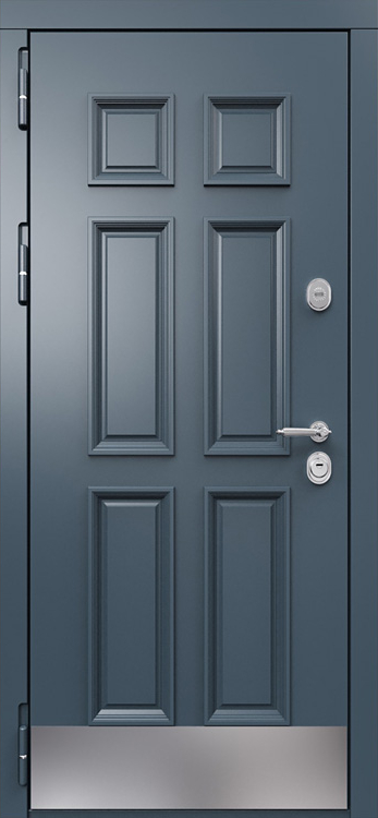 Дверь стальная МДФ эмаль №563 — это удачное сочетание надежной металлической основы и аккуратной декоративной отделки. Каркас из профильной трубы и стальной лист толщиной 2 мм обеспечивают прочность и устойчивость к взлому, а ребра жесткости повышают общий ресурс эксплуатации. Важной особенностью модели является наличие терморазрыва в коробке и полотне: конструкция эффективно препятствует промерзанию зимой, исключает появление конденсата и сохраняет тепло в помещении. Панели МДФ с ПВХ-покрытием, использованные с обеих сторон, защищены от влаги и мелких механических повреждений, благодаря чему дверь долго сохраняет привлекательный внешний вид. Два контура резинового уплотнителя дополнительно усиливают защиту от сквозняков и уличного шума. Такая дверь органично подходит для частных домов, квартир и офисов, сочетая в себе надежность стали и практичность современной отделки. Дверь стальная МДФ эмаль №563 от производителя: быстрое изготовление и монтаж в Наро-Фоминске, индивидуальные размеры, широкий выбор материалов и фурнитуры, официальная гарантия до 10 лет.