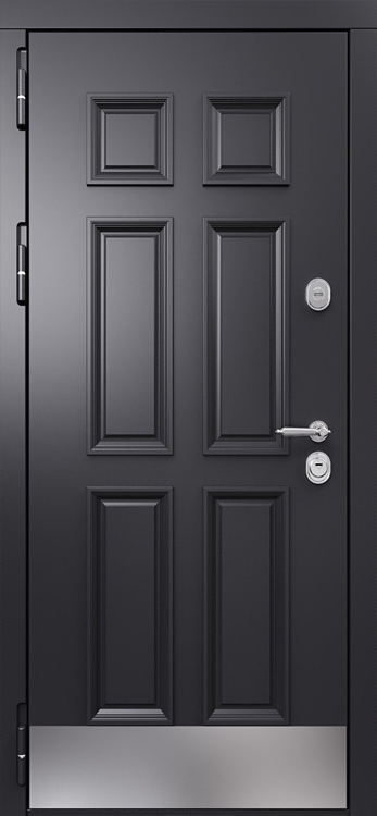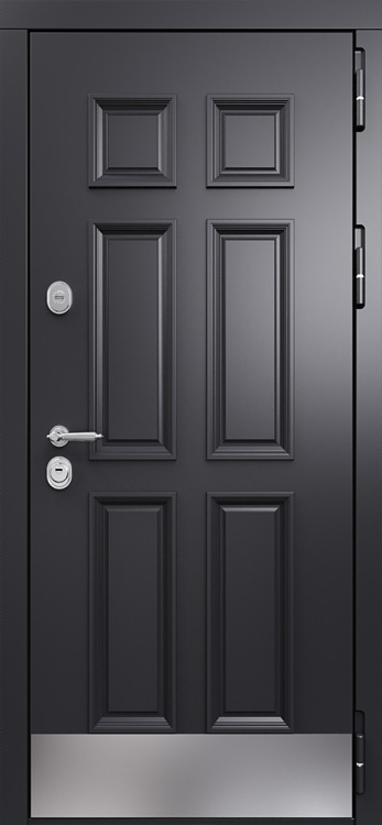 Входная дверь с МДФ №566 создана для тех, кто ценит прочность металла и уютный внешний вид в одном решении. Она одинаково хорошо вписывается в частный дом, квартиру или офис, подчеркивая солидность пространства и обеспечивая надежную защиту. Каркас и полотно собраны из профильных труб, усиленных ребрами жесткости, а стальной лист толщиной 2 мм гарантирует устойчивость к взлому и длительный срок службы. С обеих сторон дверь облицована МДФ панелями с ПВХ-покрытием, что делает поверхность более устойчивой к истиранию и мелким повреждениям, сохраняя привлекательность даже при интенсивной эксплуатации. Панели легко очищаются и не выгорают на солнце, благодаря чему дверь подходит и для уличной установки. Два контура уплотнения надежно защищают от сквозняков и посторонних запахов, а при необходимости можно дополнительно усилить конструкцию тепло- и шумоизоляцией. Модель №566 сочетает в себе сдержанный дизайн и функциональность, делая ее практичным выбором для самых разных помещений. Входная дверь с МДФ №566 от производителя: быстрое изготовление и монтаж в Наро-Фоминске, индивидуальные размеры, широкий выбор материалов и фурнитуры, официальная гарантия до 10 лет.