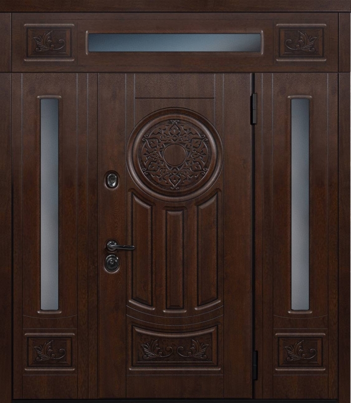 Эта нестандартная парадная дверь с фрамугой №6 — отличный выбор для тех, кто ценит элегантность и долговечность. Внешняя и внутренняя отделка из МДФ придает дверям стильный и современный вид, а также защиту от механических повреждений. МДФ устойчива к царапинам и вмятинам, что делает дверь идеальной для долгосрочной эксплуатации. Каркас из профильной трубы 50х25 мм и лист металла толщиной 2 мм обеспечивают прочность и надежность, а ребра жесткости из профильных труб гарантируют дополнительную устойчивость. В двери установлены блокираторы, два контура уплотнителей из резины, что повышает звуко- и теплоизоляцию. Замки от известных производителей, таких как Просам и Мосрентген, обеспечат надежную защиту. Возможность комбинировать отделку, добавлять зеркало, стеклопакет или кованые элементы позволяет легко адаптировать дверь под любые предпочтения. Нестандартная парадная дверь с фрамугой №6 от производителя: быстрое изготовление и монтаж в Наро-Фоминске, индивидуальные размеры, широкий выбор материалов и фурнитуры, официальная гарантия до 10 лет.