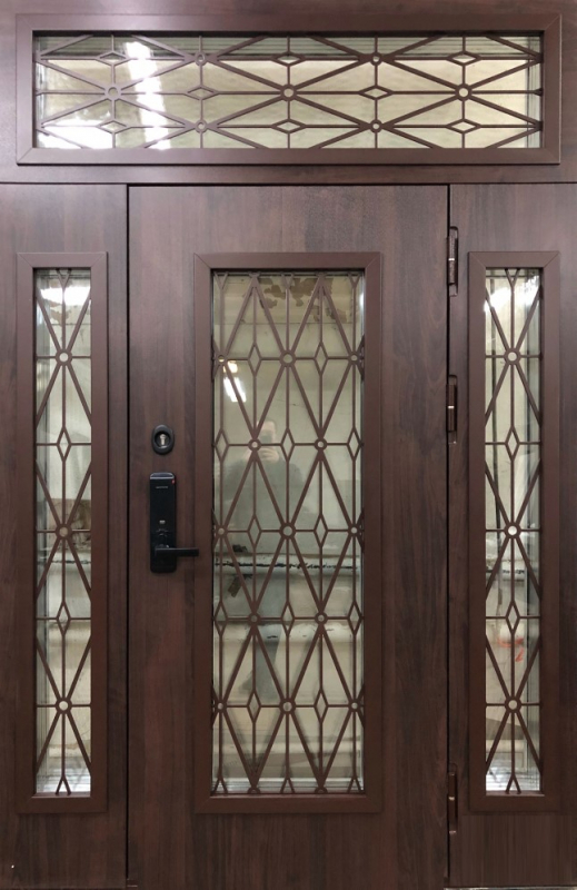Входная дверь с декоративным рисунком и фрамугой №8 сочетает в себе элегантность и надёжность. Внешняя и внутренняя отделка из панелей МДФ с ПВХ покрытием обеспечивают долговечность и лёгкость в уходе, сохраняя стойкость к внешним воздействиям и механическим повреждениям. Каркас из профильной трубы 50x25 мм и лист металла толщиной 2 мм придают двери прочность, а ребра жесткости из труб 40x25 мм усиливают её устойчивость. Несмотря на отсутствие терморазрыва, конструкция двери с двумя контурами уплотнителей гарантирует отличную изоляцию от холода и шума. Такая дверь идеально подойдёт для установки в местах, где важен стильный внешний вид и безопасность. Входная дверь с декоративным рисунком и фрамугой №8 от производителя: быстрое изготовление и монтаж в Наро-Фоминске, индивидуальные размеры, широкий выбор материалов и фурнитуры, официальная гарантия до 10 лет.