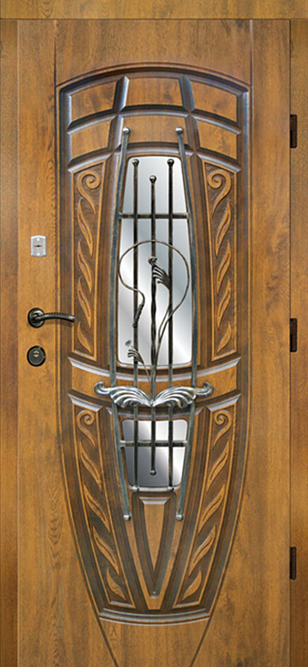 Для загородного дома важна дверь, которая умеет быть не только красивой, но и практичной. Натуральное дерево в отделке делает её внешне солидной и теплой, а декоративная ковка добавляет изящества и превращает вход в стильный акцент фасада. В основе конструкции лежит прочный стальной каркас с листом металла толщиной 1,5 мм и ребрами жесткости, а противосъёмные блокираторы обеспечивают дополнительный уровень защиты. Особого внимания заслуживает терморазрыв, выполненный в коробке и полотне: он надежно изолирует дом от холода, предотвращает промерзание и сохраняет уют даже при сильных морозах. Входная дверь уличная с ковкой №22 также оснащена тройным контуром магнитного уплотнения, что усиливает герметичность и помогает снизить шум. Конструкция позволяет выбирать размеры и дополнения по вкусу, включая стеклопакет, зеркало или видеодомофон, создавая гармонию между безопасностью, удобством и выразительным дизайном. Входная дверь уличная с ковкой №22 от производителя: быстрое изготовление и монтаж в Наро-Фоминске, индивидуальные размеры, широкий выбор материалов и фурнитуры, официальная гарантия до 10 лет.