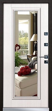 Если важен визуальный эффект, выбирайте металлические двери с шумоизоляцией и зеркалом на внутренней панели: это экономит место в прихожей и не мешает тишине при сохранении толщины панелей и плотной посадке зеркала.