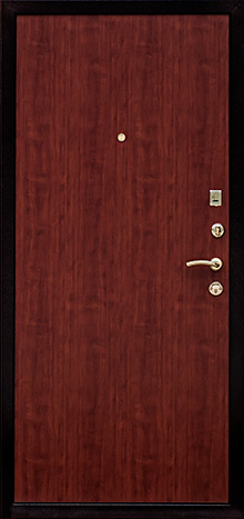 Металлическая дверь с шумоизоляцией — это многослойный «сэндвич»: стальное полотно, внутри — наполнитель из базальтовых/минеральных плит или ППУ, изнутри — декоративная панель (МДФ/шпон/ПВХ). Работает связка: металл отражает и частично рассеивает звук, пористый наполнитель гасит его в толщу, панели добавляют массу и плотность.
