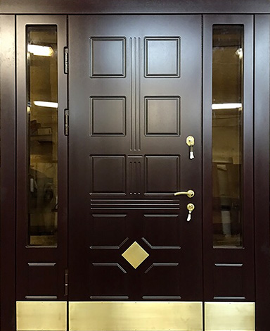 Узкая вертикальная вставка даёт обзор на уровне глаз и аккуратный световой акцент. Панорамная — максимальную освещённость и эффект «витрины» в современном стиле. Фрамуга и боковые световые элементы расширяют проём визуально и уравновешивают массив полотна.