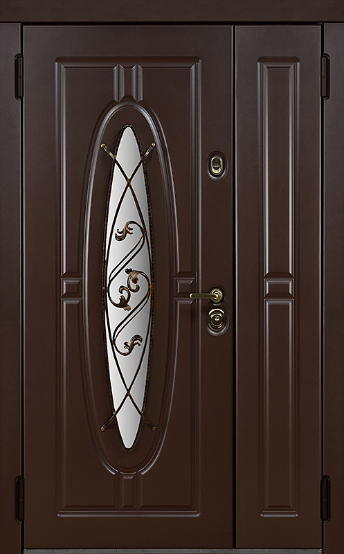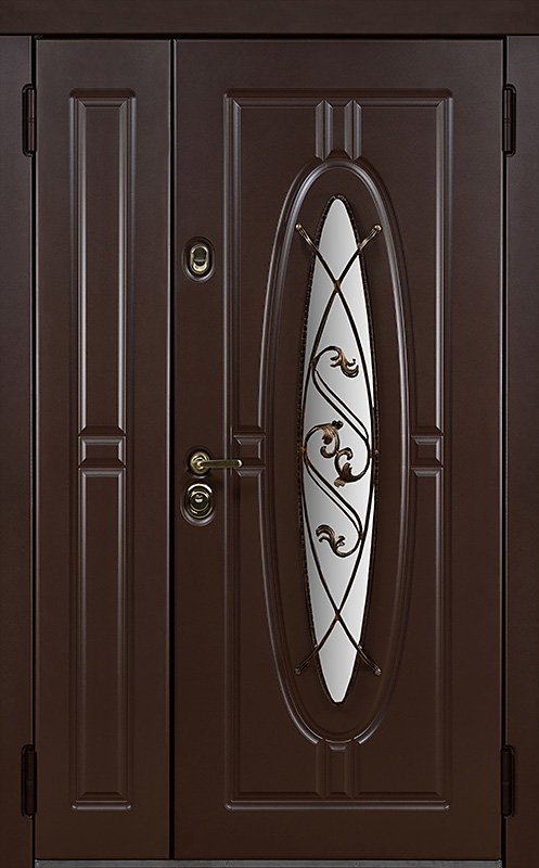 Двойная уличная дверь с овальным стеклом и художественной ковкой №14 — это уникальное сочетание функциональности и эстетики. Панели МДФ с ПВХ-покрытием, используемые как для внешней, так и для внутренней отделки, обладают высокой стойкостью к внешним воздействиям, сохраняя свой внешний вид на долгие годы. Внешний декор в виде художественной ковки придаёт двери особый шарм, подчеркивая её стиль и индивидуальность. Двойная уличная дверь с овальным стеклом и художественной ковкой №14 от производителя: быстрое изготовление и монтаж в Наро-Фоминске, индивидуальные размеры, широкий выбор материалов и фурнитуры, официальная гарантия до 10 лет.