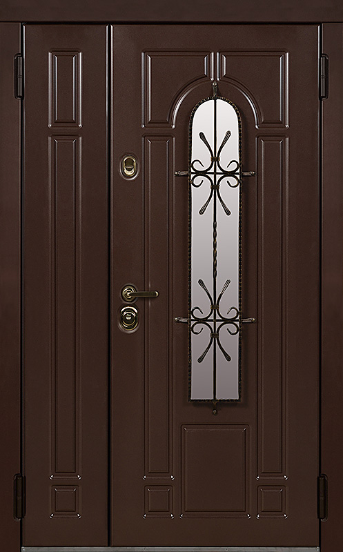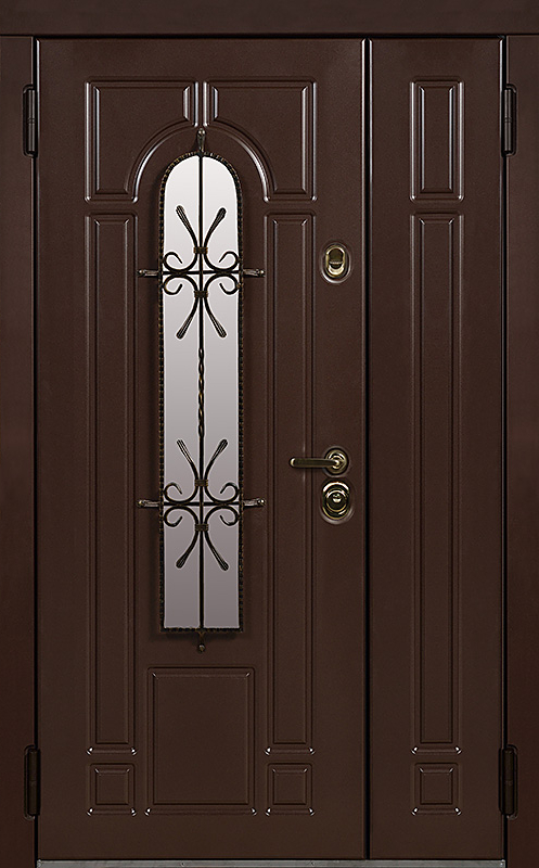 Эта металлическая двухстворчатая дверь с арочным стеклопакетом №15 представляет собой идеальный баланс между эстетикой и прочностью. Арочное стекло добавляет в её дизайн утончённость, а ковка в декоре придаёт изысканный, но в то же время крепкий и надёжный вид. Плита МДФ, используемая как для внешней, так и для внутренней отделки, не только сохраняет прекрасный внешний вид, но и устойчива к механическим повреждениям. Металлическая двухстворчатая дверь с арочным стеклопакетом №15 от производителя: быстрое изготовление и монтаж в Наро-Фоминске, индивидуальные размеры, широкий выбор материалов и фурнитуры, официальная гарантия до 10 лет.