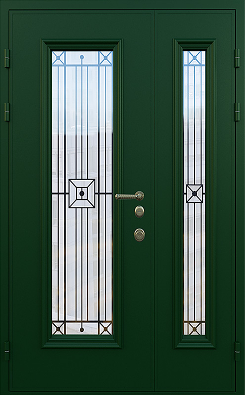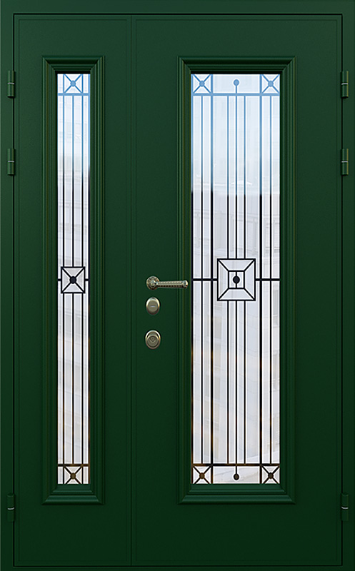 Зеленая полуторная дверь со стеклопакетом для частного дома №18 — это идеальный выбор для тех, кто хочет добавить в свой дом надежность и стиль. Элементы декора, такие как багет и ковка, придают двери элегантный вид, который идеально гармонирует с фасадом загородного дома. Панели МДФ с ПВХ-покрытием, использованные для внешней и внутренней отделки, обеспечивают высокую стойкость к механическим повреждениям и внешним воздействиям, сохраняя прекрасный внешний вид на долгое время. Зеленая полуторная дверь со стеклопакетом для частного дома №18 от производителя: быстрое изготовление и монтаж в Наро-Фоминске, индивидуальные размеры, широкий выбор материалов и фурнитуры, официальная гарантия до 10 лет.