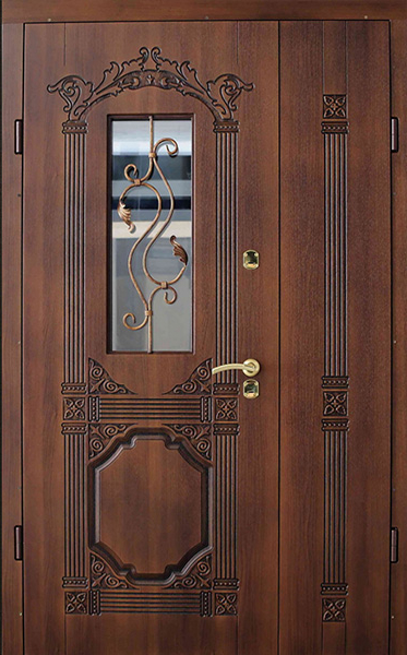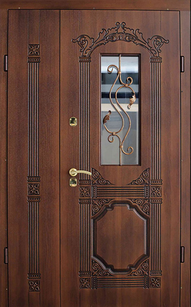 Уличная двухстворчатая дверь со стеклом и кованой решеткой №26 — это не только надежная защита для вашего дома, но и элемент, который подчеркнет его стиль и индивидуальность. Внешняя отделка из МДФ с ПВХ обеспечивает долговечность, устойчивость к внешним воздействиям и сохранение эстетического вида на долгое время. Добавление кованой решетки и стеклопакета придает двери элегантности, а также улучшает светопропускание, создавая комфортное освещение в вашем помещении. Уличная двухстворчатая дверь со стеклом и кованой решеткой №26 от производителя: быстрое изготовление и монтаж в Наро-Фоминске, индивидуальные размеры, широкий выбор материалов и фурнитуры, официальная гарантия до 10 лет.