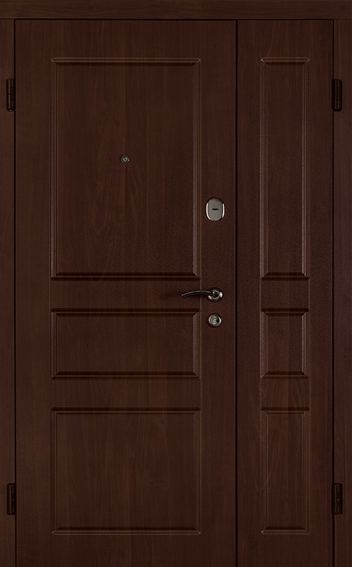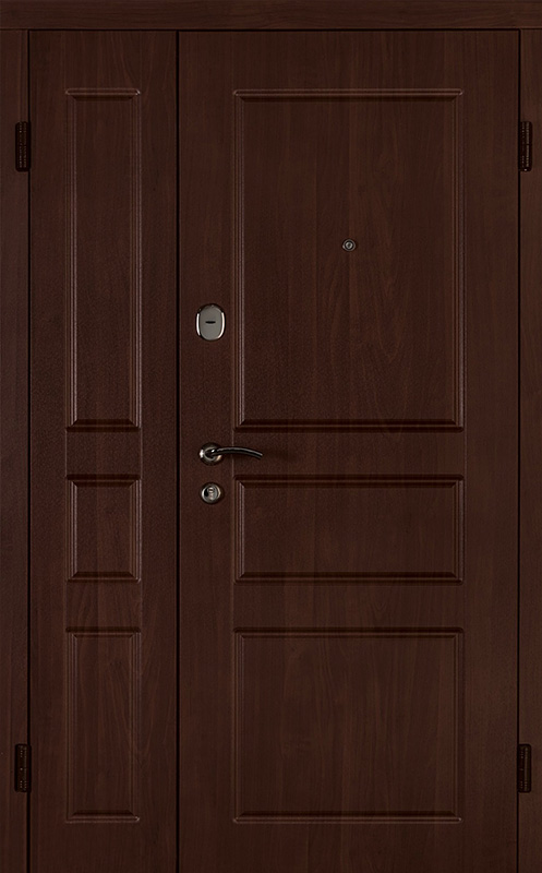 Коричневая входная полуторная дверь с филенчатой створкой №4 – это надежное и стильное решение для вашего дома или офиса. Внешняя и внутренняя отделка из МДФ с ПВХ обеспечивает долговечность и устойчивость к повреждениям, сохраняя при этом элегантный внешний вид. Прочные материалы конструкции, такие как профильная труба 50х25 мм и лист металла толщиной 2 мм, гарантируют стабильность и безопасность. Ребра жесткости из профильных труб 40х25 мм усиливают дверное полотно, а уплотнение с двумя контурами надежно защищает от внешних факторов. Несмотря на отсутствие терморазрыва, в двери реализованы терморазрывы в коробке и полотне, что помогает улучшить теплоизоляцию. Возможность выбора дополнительных опций, таких как шумоизоляция, делает эту дверь универсальной для различных условий эксплуатации. Коричневая входная полуторная дверь с филенчатой створкой №4 от производителя: быстрое изготовление и монтаж в Наро-Фоминске, индивидуальные размеры, широкий выбор материалов и фурнитуры, официальная гарантия до 10 лет.