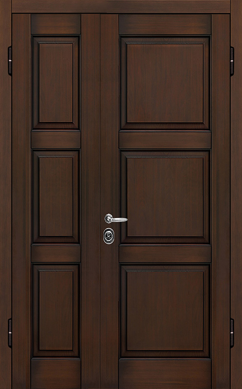 Двойная филенчатая дверь для загородного дома венге №7 сочетает в себе элегантность и прочность. Ее внешняя отделка выполнена из панелей МДФ с ПВХ, что придает двери современный вид, а также обеспечивает устойчивость к механическим повреждениям и долговечность. Каркас из профильной трубы 50х25 мм и полотно толщиной 2 мм гарантируют надежность и устойчивость к нагрузкам. Ребра жесткости из профильных труб 40х25 мм усиливают конструкцию, а уплотнение с двумя контурами защищает от проникновения влаги и пыли. Замки "Просам" и "Мосрентген" с тремя ригелями обеспечивают высокий уровень безопасности. В дверь можно добавить дополнительные элементы, такие как стеклопакет, зеркало или кованые детали, что позволяет адаптировать ее под любой интерьер. Терморазрывы в коробке и полотне способствуют лучшей теплоизоляции, обеспечивая комфорт в любое время года. Двойная филенчатая дверь для загородного дома венге №7 от производителя: быстрое изготовление и монтаж в Наро-Фоминске, индивидуальные размеры, широкий выбор материалов и фурнитуры, официальная гарантия до 10 лет.