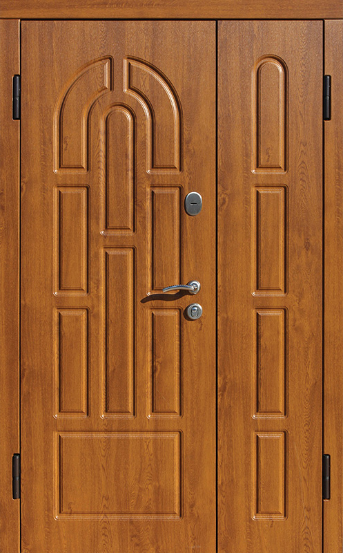Полуторная входная дверь цвет дуб с фрезерованной аркой №9 выполнена с использованием высококачественных материалов, что делает её отличным выбором для тех, кто ценит как стиль, так и надёжность. Внешняя и внутренняя отделка выполнены из МДФ с ПВХ-покрытием, что придаёт двери привлекательный вид и устойчивость к внешним воздействиям. Материалы отделки обеспечивают долговечность и стойкость к механическим повреждениям, сохраняя внешний вид в первозданном виде долгое время. Полуторная входная дверь цвет дуб с фрезерованной аркой №9 от производителя: быстрое изготовление и монтаж в Наро-Фоминске, индивидуальные размеры, широкий выбор материалов и фурнитуры, официальная гарантия до 10 лет.