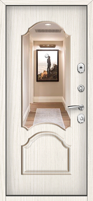 Входная дверь с зеркальной вставкой для прихожей №21 — это не просто надежное, но и стильное решение для частных домов, квартир и офисов. Благодаря прочному каркасу из профильной трубы 50х25 мм и металлическому полотну толщиной 2 мм, дверь гарантирует долговечность и высокую степень защиты. Внешняя отделка с порошковым напылением не только добавляет эстетичности, но и защищает от атмосферных воздействий, а внутренняя отделка из панелей МДФ ПВХ устойчива к механическим повреждениям. Вставка зеркала на двери добавляет современности и практичности, расширяя пространство прихожей. Два контура резинового уплотнителя эффективно предотвращают попадание холода и шума. Дверь оборудована двумя замками, что повышает безопасность. Также можно заменить замки на более современные модели и добавить опции, такие как стеклопакет или видеодомофон, что делает эту модель еще более универсальной. Входная дверь с зеркальной вставкой для прихожей №21 от производителя: быстрое изготовление и монтаж в Наро-Фоминске, индивидуальные размеры, широкий выбор материалов и фурнитуры, официальная гарантия до 10 лет.