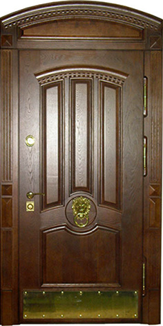 Эксклюзивная глянцевая дверь в частный дом с нестандартной фрезеровкой №24