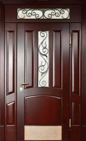 Красивая шпонированная дверь с надежной фурнитурой и ковкой "лоза" №33