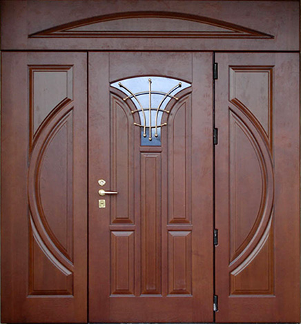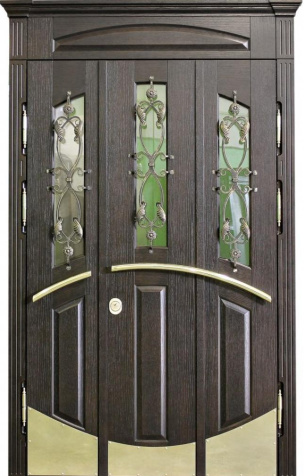 Морозостойкая дверь в широкий проем с глухим полотном стеклом и ковкой №30