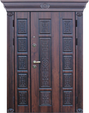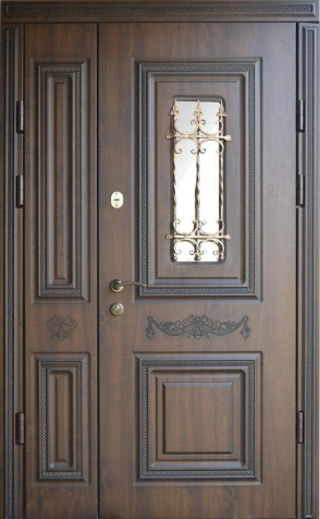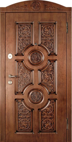 Арочный проём всегда смотрится благородно и подчёркивает архитектурный стиль дома, а витраж вносит в фасад лёгкость и игру света. Арочная входная дверь с витражом в частный дом №69 сочетает прочную металлическую основу с отделкой панелями из натурального дерева, которые сохраняют свою красоту долгие годы и стойко переносят ежедневную эксплуатацию. В конструкции предусмотрен лист стали толщиной 2 мм и система ребер жёсткости, что обеспечивает высокий уровень безопасности и долговечности. Терморазрыв в коробке и полотне защищает от промерзания и появления конденсата, сохраняя тепло в доме даже в сильные морозы. Итальянские замки Cisa цилиндрового и сувальдного типа дополняют защиту, гарантируя надёжность при ежедневном использовании. Возможность индивидуальной отделки, добавления зеркала, кованых элементов или стеклопакета делает эту модель не только функциональной, но и выразительной деталью экстерьера. Арочная входная дверь с витражом в частный дом №69 от производителя: быстрое изготовление и монтаж в Наро-Фоминске, индивидуальные размеры, широкий выбор материалов и фурнитуры, официальная гарантия до 10 лет.