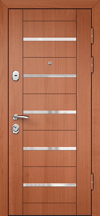 Современная входная дверь с цилиндровым замком №21 сочетает строгую надежность металлической конструкции и аккуратный внешний вид. Каркас из профильной трубы и лист стали толщиной 2 мм образуют прочный щит, усиленный ребрами жесткости и блокираторами. Накладки из МДФ придают полотну более «домашний» облик: материал не только эстетичен, но и практичен — ПВХ-покрытие стойко переносит небольшие повреждения и сохраняет первозданный вид долгие годы. Такая дверь подходит для квартиры, офиса или частного дома, где важно совместить защиту и стиль. Цилиндровый замок обеспечивает удобное и надежное закрывание, а два контура резинового уплотнителя защищают от сквозняков и лишнего шума. При желании возможно дополнить конструкцию тепло- и шумоизоляцией или установить замки другого типа, включая современные электронные системы. Современная входная дверь с цилиндровым замком №21 от производителя: быстрое изготовление и монтаж в Наро-Фоминске, индивидуальные размеры, широкий выбор материалов и фурнитуры, официальная гарантия до 10 лет.